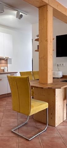 Diese modern eingerichtet Ferienwohnung ist ideal für 4 Personen, auf einem Sofa mit Bettfunktion könnte eine weitere Person übernachten.